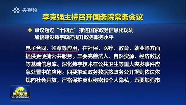 国务院常务会议推广电子合同、签章等应用,加快推进数字政府建设