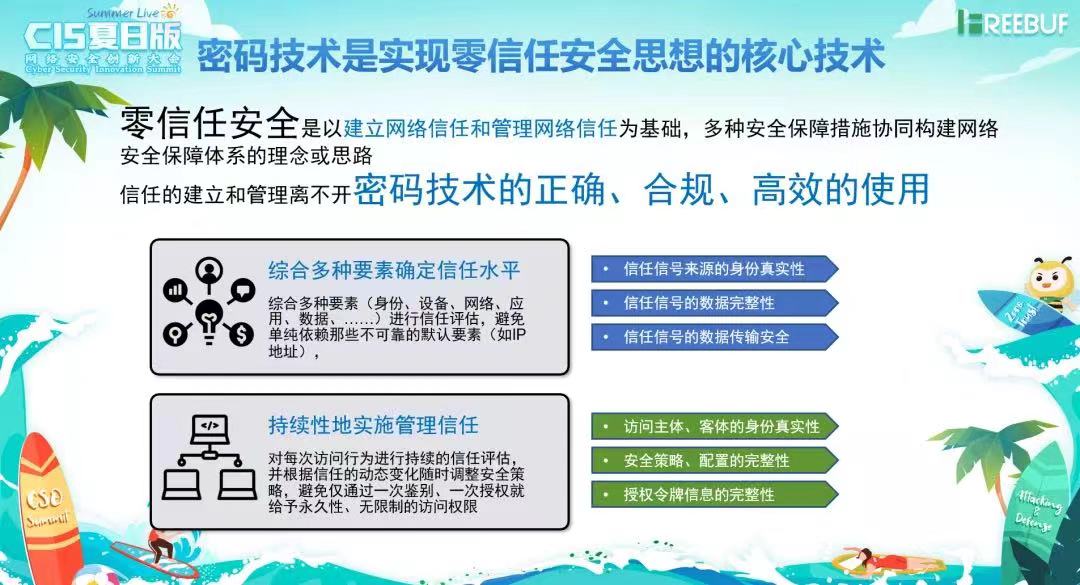 互联网的高速发展带来产业数字化转型的新浪潮,企业的IT架构也在发生着改变,随着企业IT架构正在向“无边界”转变,传统的安全边界已经无法满足企业的安全需求。尤其疫情之下,远程办公需求的激增更是成为很多黑客的突破口。为此,7月8日,作为已经连续举办七届,载誉满满的网络安全领域的行业盛宴,CIS 夏日版·Summer live以“安全生长,重启一夏”为主题开启线上直播,与顶尖专家学者共话安全,共谈零信任市场新格局。bb贝博艾弗森官方网站夏冰冰博士受邀出席并带来《零信任与密码》的主题演讲。