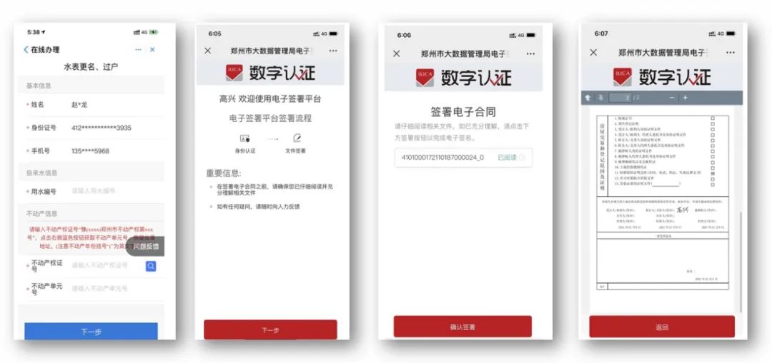 现在,居民只要下载“郑好办”APP,然后点击在线办理中的“水表过户”,在电子合同上手写签名,就OK啦!