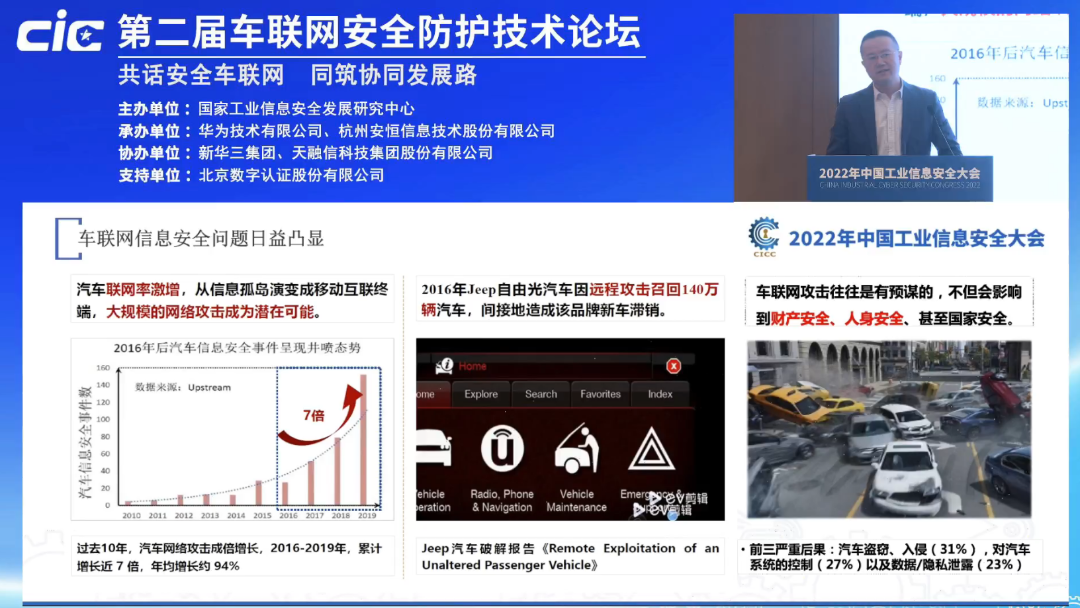 1月10日,由国家工业信息安全发展研究中心、工业信息安全产业发展联盟主办的中国工业信息安全大会在京隆重召开。作为国内举办最早、会议规格最高、规模最大的工业信息安全领域盛会之一,本届大会汇聚了最新技术研究成果和应用实践,助力全面推进落实国家工业信息安全发展重点任务。bb贝博艾弗森官方网站受邀参会,入选首批“久安计划”合作伙伴,并荣获优秀应用案例奖。bb贝博艾弗森官方网站公司战略业务创新中心总监王新华于会上分享了“智能汽车网络安全与数据安全思考与实践”的主题演讲。