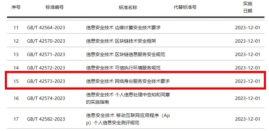 图片来自全国信安标委标准清单部分截图