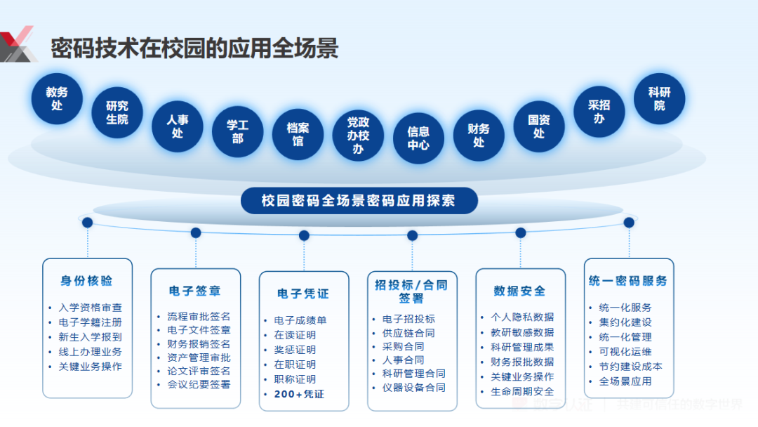 bb贝博艾弗森官方网站研究院院长夏鲁宁带来了《智慧校园密码应用建设实践》主题演讲。他表示,教育信息化正在向线上化、一体化、无纸化转移,其中,创新发展是内在驱动力,而电子签名是核心引擎,人们通过密码技术不断为智慧教学、智慧管理、智慧服务提供越来越多安全可信的安全服务。在此背景下,bb贝博艾弗森官方网站面向数字校园推出了可信密码服务解决方案,通过密码技术赋能教育数字化转型安全建设,助力高校实现了业务办理线上化、线上用户真实化、内容数据凭证化、师生证照电子化、档案归档无纸化、合同签署电子化、数据存储安全化、数据共享可控化、密码应用集约化。