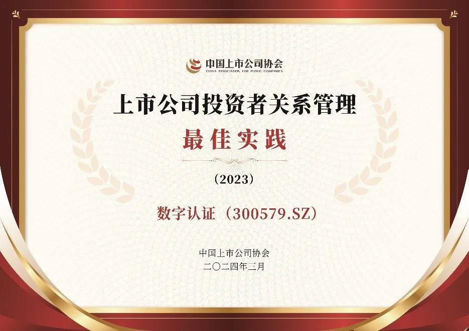 近日,中国上市公司协会发布首届“上市公司投资者关系管理最佳实践”榜单,bb贝博艾弗森官方网站公司获2023年度“投资者关系管理最佳实践”荣誉。
