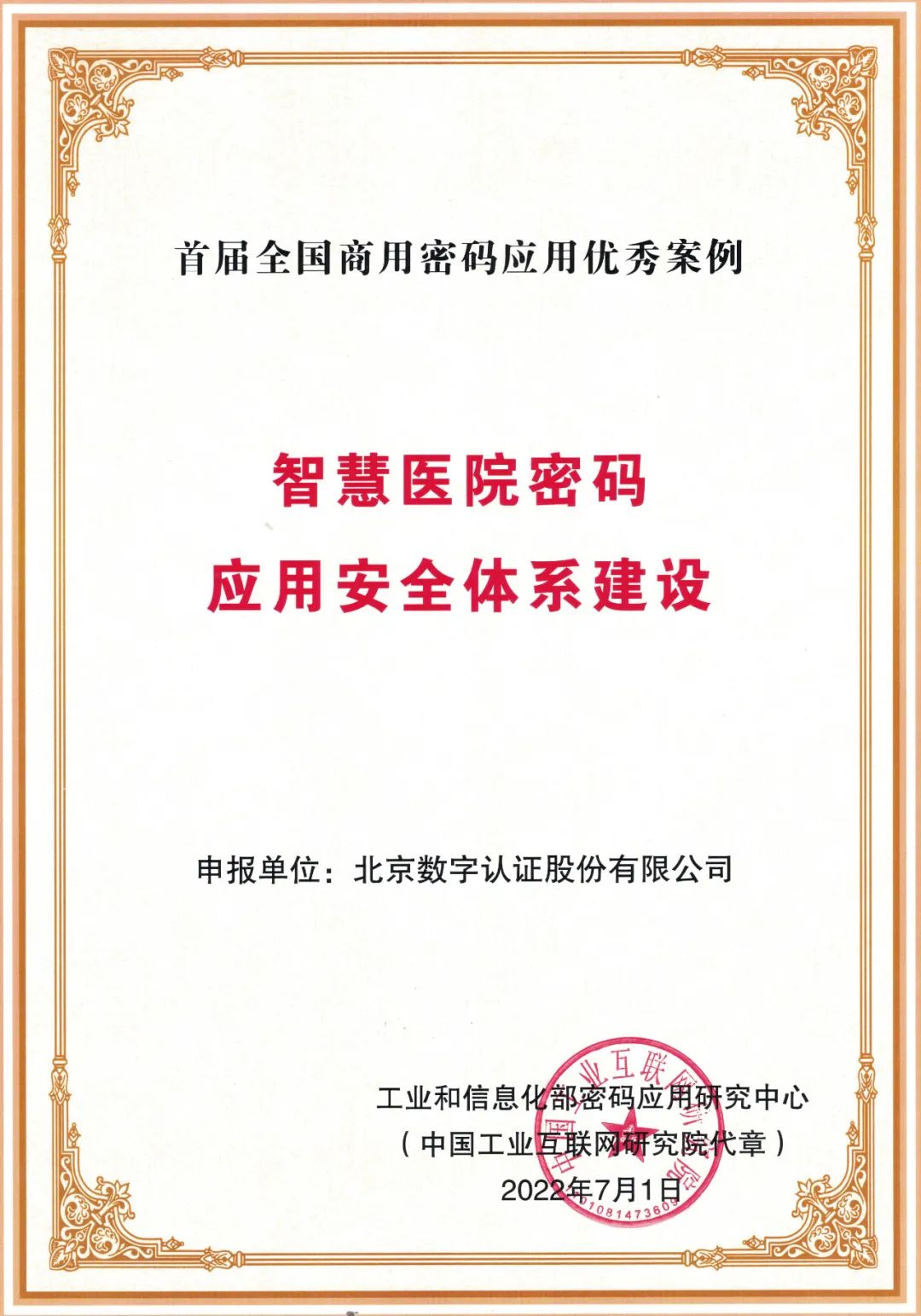 工信部“首届全国商用密码应用优秀案例”结果公示,bb贝博艾弗森官方网站智慧医院密码建设获奖