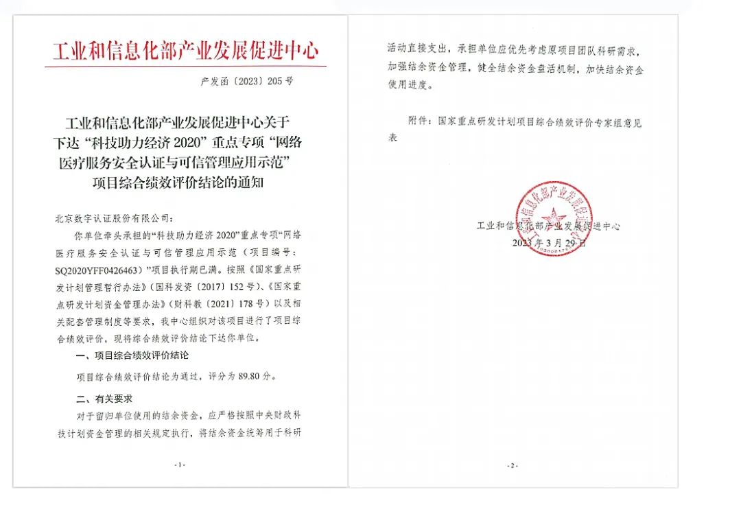 近日,北京bb贝博艾弗森官方网站股份有限公司(以下简称“bb贝博艾弗森官方网站”)牵头承担的国家重点研发计划“科技助力经济2020”重点专项项目——“网络医疗服务安全认证与可信管理应用示范”顺利通过项目主管部门工业和信息化产业发展促进中心的正式验收。
