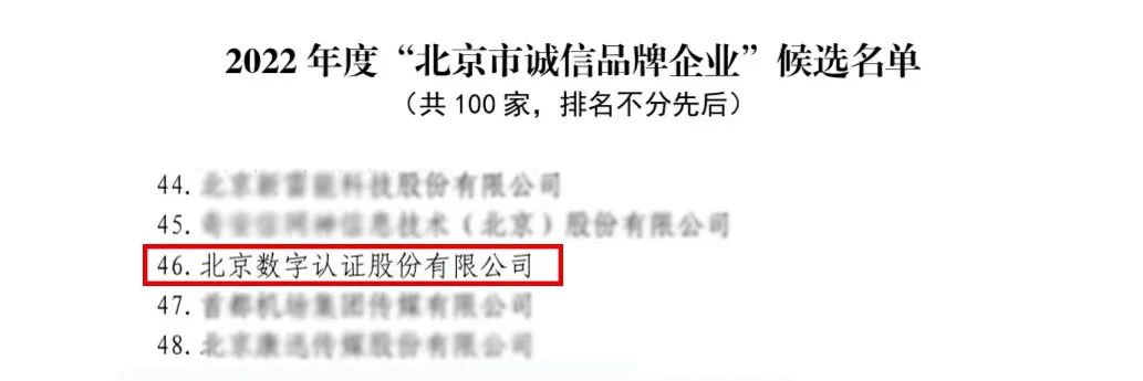 按照首都文明办、市经济和信息化局、市市场监管局、市商务局、市文化和旅游局、市统计局、市税务局、市工商联等部门《关于印发<“百业万企”共铸诚信文明北京活动方案>的通知》(精建办〔2022〕1号)要求,北京市共铸诚信活动领导小组办公室在全市组织开展了“北京市共铸诚信企业”征集工作。经资格审核、信用审查、征求市主管部门意见、组织专家审核后,共有963家企业入围“北京市共铸诚信企业”候选名单。其中,综合成绩排在前100名的,入围“北京市诚信品牌企业”候选名单。