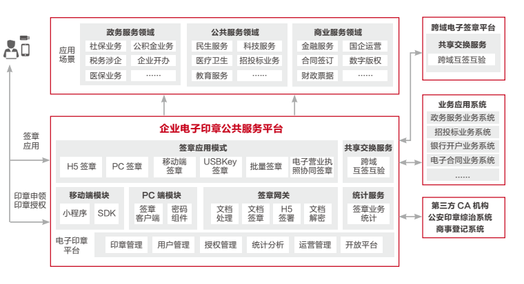 除政务服务外,在招投标业务、企业内部信息化平台建设、商业合同及劳动合同签署中、金融机构电子材料提交等场景下,实现业务用章全流程电子化、业务办理无纸化,推动更多业务移动端办理,进一步实现降本增效,全方位赋能企业运营。