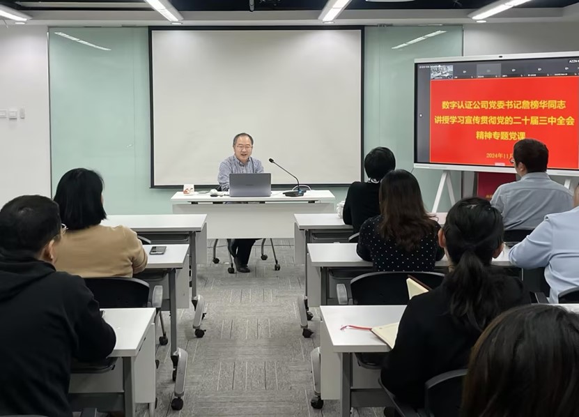 詹榜华指出,作为首都国有企业,在接下来的工作中,bb贝博艾弗森官方网站公司一是要把学习贯彻党的二十届三中全会精神做为重要的政治任务,切实把公司发展统一到党中央的决策部署上来。做好国资公司技术创新企业排头兵,以密码技术为核心,开展好网络安全技术工作。进一步深入学习领会《决定》对网信领域做出的新部署新要求,奋力推动企业发展和国家发展同频共振。二是要坚持党对国有企业的全面领导与完善公司治理有机融合,充分发挥国有企业党组织的领导作用,通过党建引领企业发展方向,确保公司在快速变化的市场环境中始终保持正确的政治方向和坚定的战略定力。整合人才、技术、服务结合,提升京津冀服务竞争力。三是要切实履行首都网络安全基础设施保障责任,深度参与北京全球数字经济标杆城市建设,积极投身京津冀协同发展国家战略,积极服务“两区”建设。根据实际及时调整发展方向,在新业态下,聚焦数字信任价值创造,提供从身份管理、信任服务到数字化交付的全链条市场供给,以优质的服务和数字信任品牌形成核心竞争力。四是要聚焦创新驱动发展战略,以科技创新为抓手,着力优化资源配置、调整业务模式、完善产品与服务质量,持续补短板,为企业加快转型升级、实现健康高质量发展奠定坚实基础。全力以赴为筑牢安全屏障,助推网络强国建设贡献更大力量。